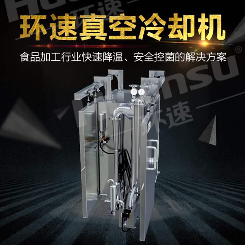 真空冷却是目前国际上先进的预冷方法,供应真空冷却机原理是将蒸煮后的高温熟食品,放入冷却箱内,关门密封,用真空泵对室内抽真空,随着冷却箱内的压力不断下降,食物组织内外水的沸点也随之降低,当室内真空度达到食品温度对应的水蒸汽的饱和压力时,食品表面的水分开始不断吸收食品本身热量汽发,进一步降压,水分不断吸热汽化,直至食品冷却到所需的温度。真空冷却机可以快速均匀地除去熟食品的热量,与传统冷库相比可避开细菌快速繁殖温度带,从而显著延长保鲜期,提高保鲜质量。